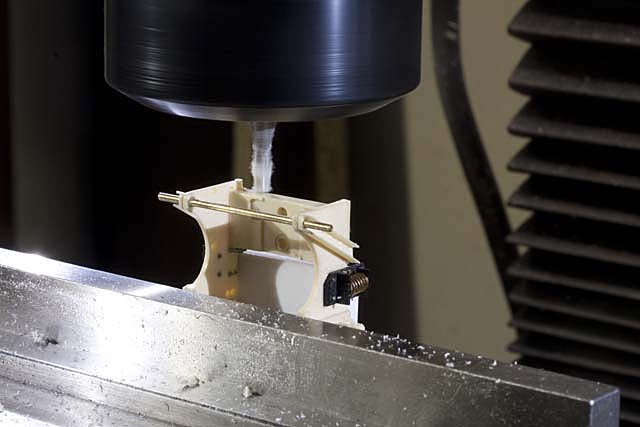 Le montage des attelages sur les bogies a nécessité une modification des flancs de bogie en PVC. Ceux-ci étant déjà montés, cette reprise a été effectuée très doucement sur la fraiseuse.