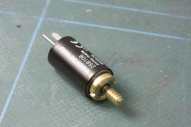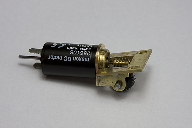 La vis est collée avec du frein-filet sur l'axe du moteur, un Maxon à RSF de 10 mm de diamètre et de 17 mm de longueur. Le moteur sera, en dehors de quelques vis, la seule pièce achetée dans le commerce de ce modèle !